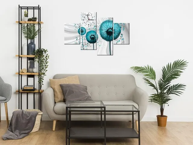 Barion Pixel Obraz s hodinami na stenu Tyrkysové púpavy 3