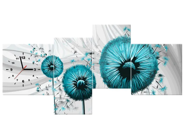 ZP5444A_4AS Obraz s hodinami na stenu Tyrkysové púpavy 3 |
