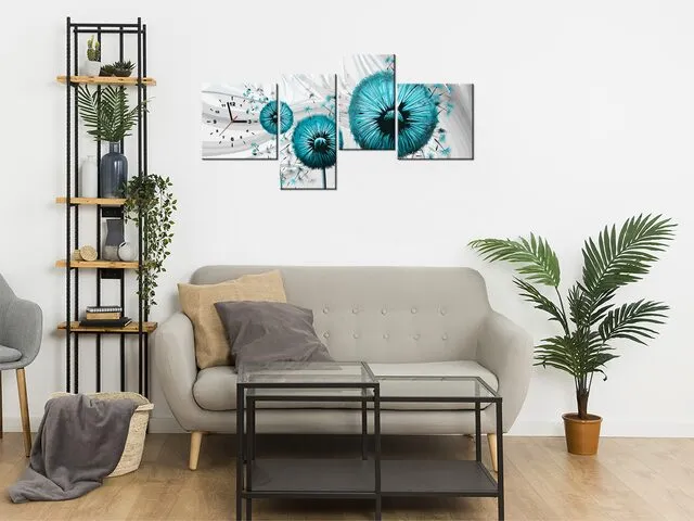 Úvod » Obrazy » Obrazy s hodinami » Obraz s hodinami na stenu Tyrkysové púpavy 3