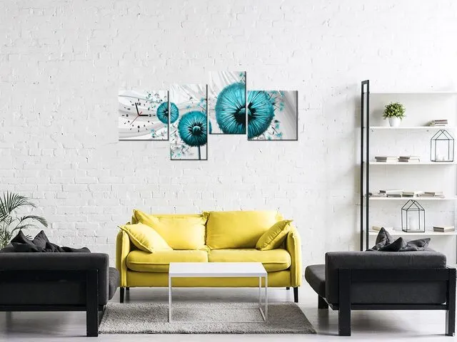 ZP5444A_4O Obraz s hodinami na stenu Tyrkysové púpavy 3 |