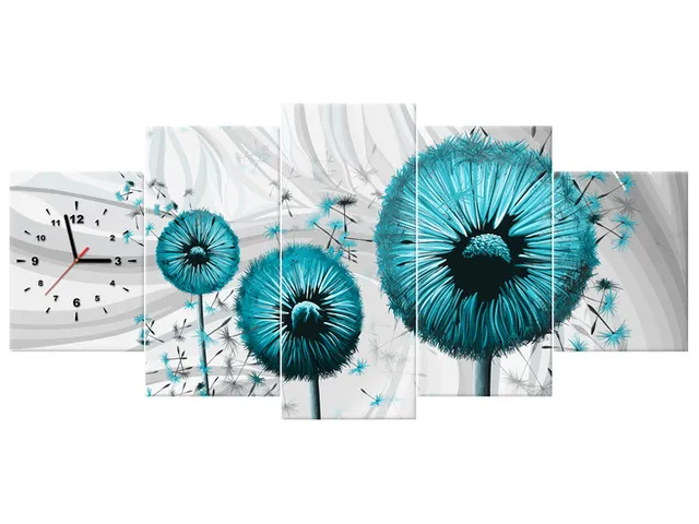 ZP5444A_4AS Obraz s hodinami na stenu Tyrkysové púpavy 3 |