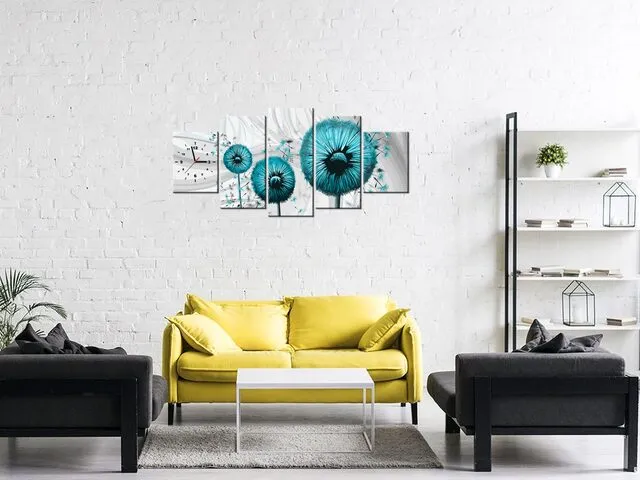 Úvod » Obrazy » Obrazy s hodinami » Obraz s hodinami na stenu Tyrkysové púpavy 3