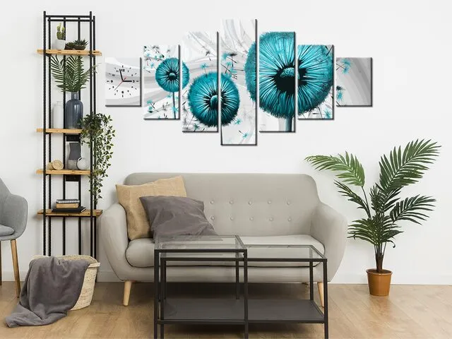 Barion Pixel Obraz s hodinami na stenu Tyrkysové púpavy 3