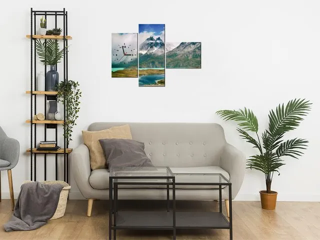 ZP4958A_3K Obraz s hodinami na stenu Zasnežené vrchy |