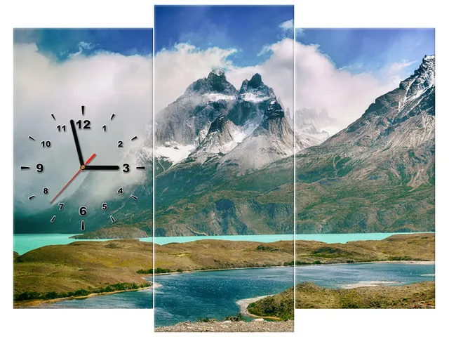 Úvod » Obrazy » Obrazy s hodinami » Obraz s hodinami na stenu Zasnežené vrchy