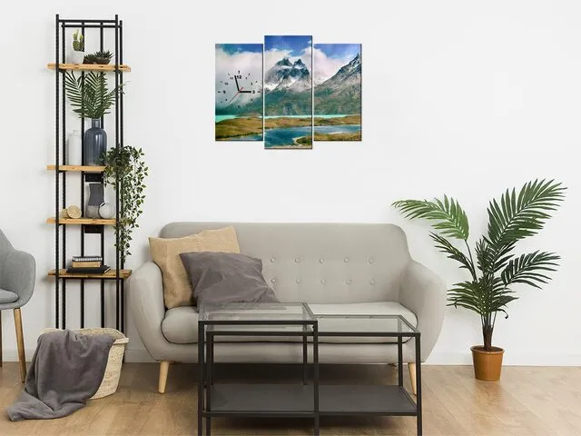 ZP4958A_3K Obraz s hodinami na stenu Zasnežené vrchy |