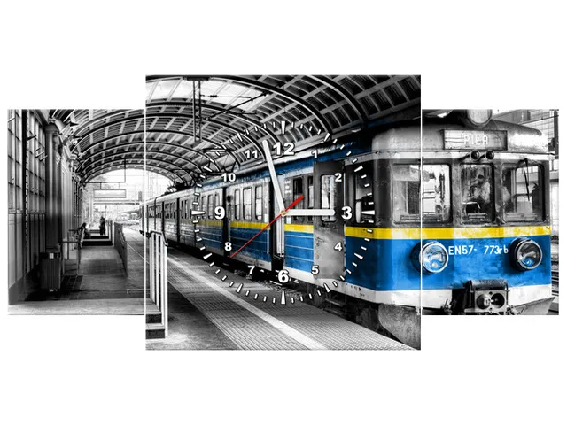 ZP5026A_3K Obraz s hodinami na stenu do chodby Vlak |