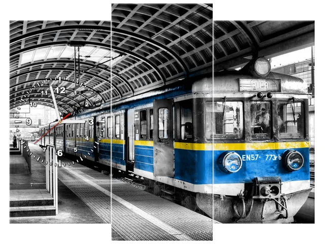 ZP5026A_3K Obraz s hodinami na stenu do chodby Vlak |