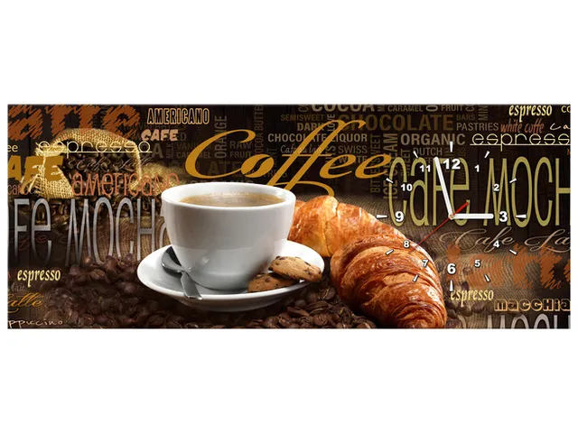 Obraz s hodinami na stenu do kuchyne Ranná káva