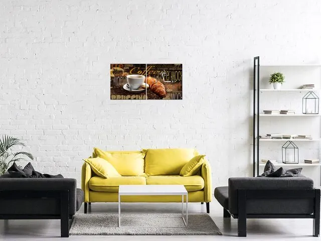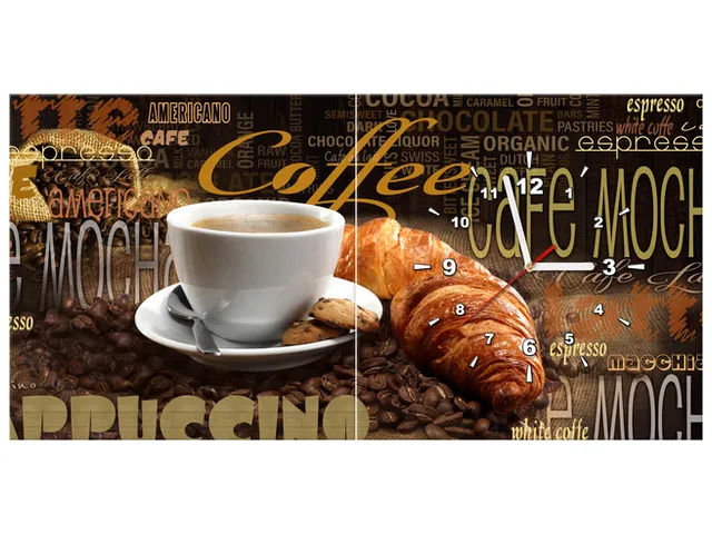 Obraz s hodinami na stenu do kuchyne Ranná káva
