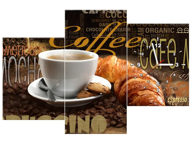 Obraz s hodinami na stenu do kuchyne Ranná káva