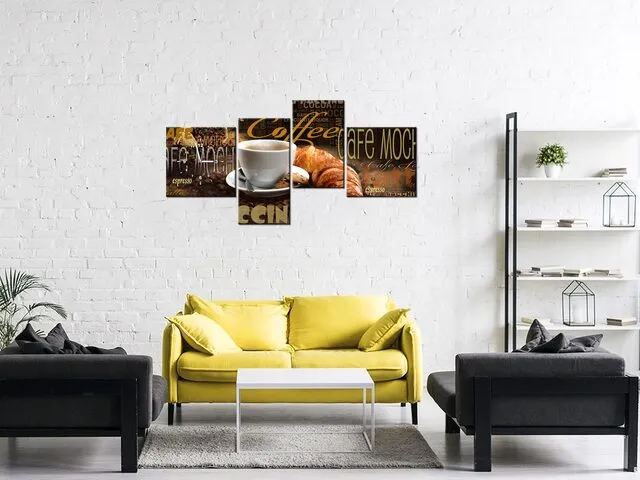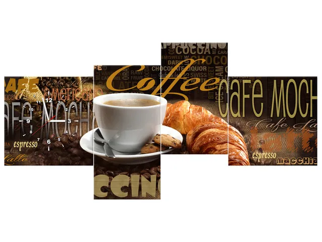 Obraz s hodinami na stenu do kuchyne Ranná káva
