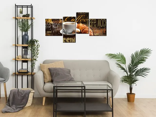 Úvod » Obrazy » Obrazy s hodinami » Obraz s hodinami na stenu do kuchyne Ranná káva