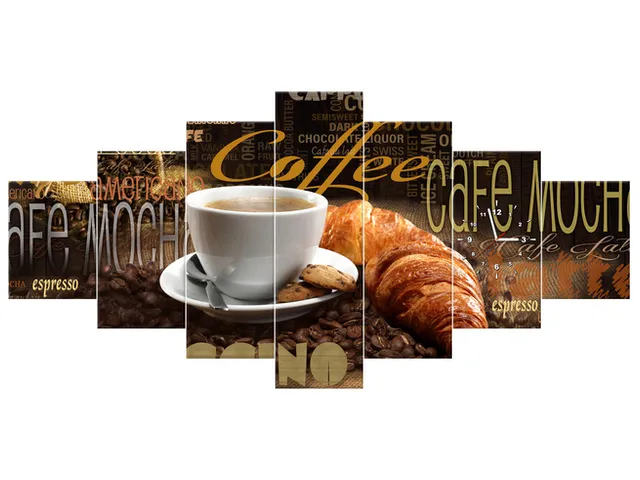 Obraz s hodinami na stenu do kuchyne Ranná káva