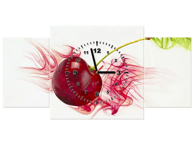ZP5036A_3K Obraz s hodinami na stenu do kuchyne Štavnatá višňa |