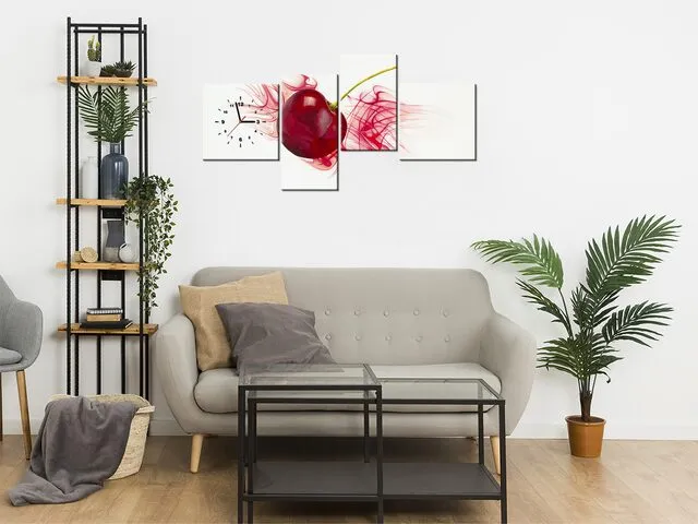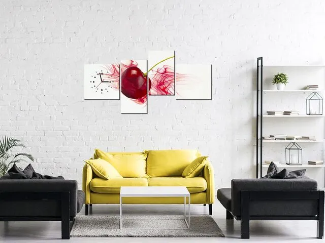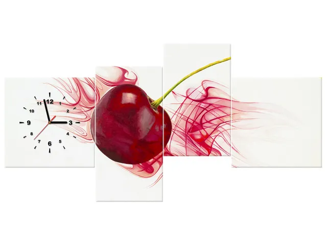 Obraz s hodinami na stenu do kuchyne Štavnatá višňa
