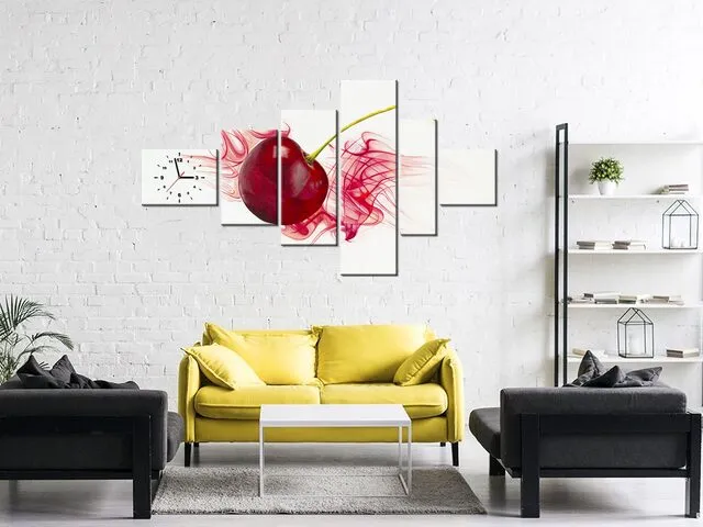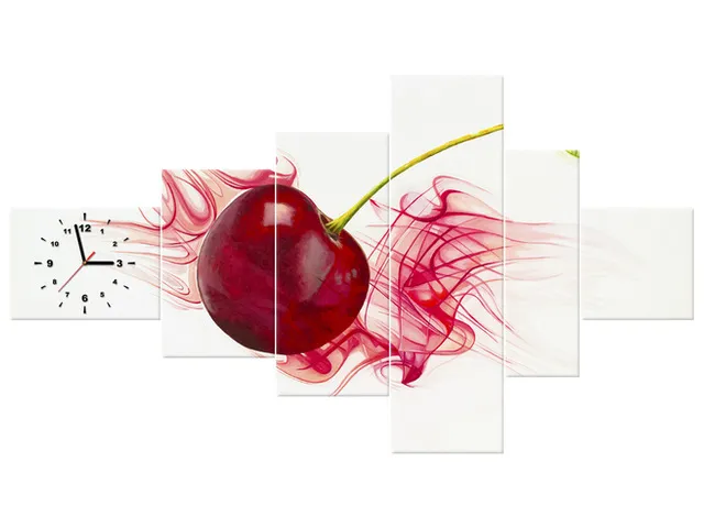 Obraz s hodinami na stenu do kuchyne Štavnatá višňa