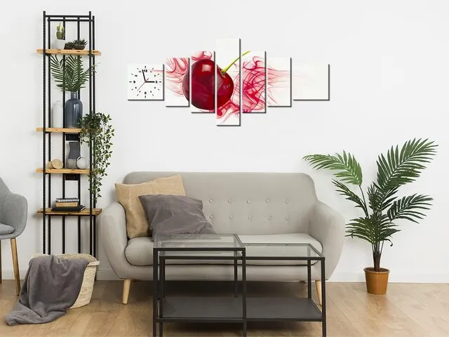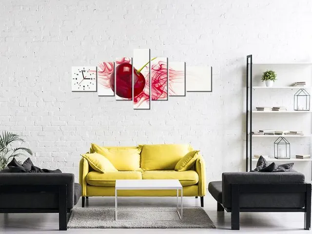 Úvod » Obrazy » Obrazy s hodinami » Obraz s hodinami na stenu do kuchyne Štavnatá višňa