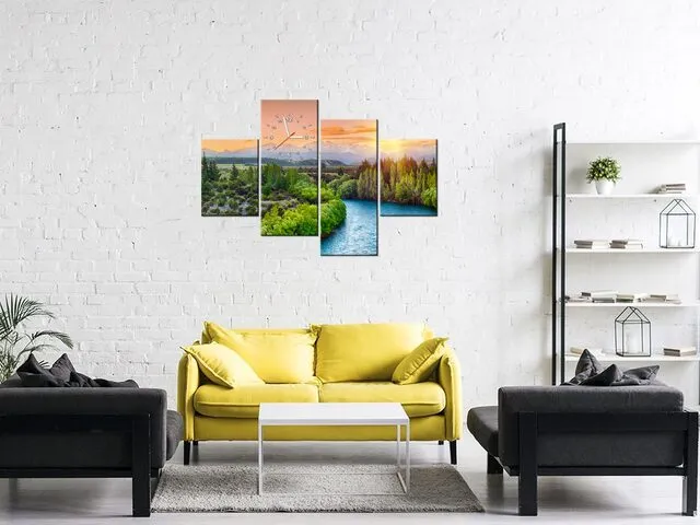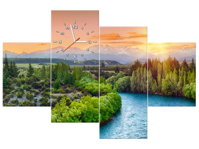 ZP2371A_4AN Obraz s hodinami rieka Clutha na Novom Zélande |