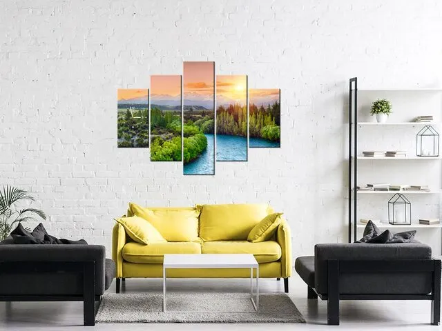 ZP2371A_3AX Obraz s hodinami rieka Clutha na Novom Zélande |