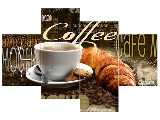 Úvod » Obrazy » Obrazy s hodinami » Obraz s hodinami tlačený na plátne Chutná káva v sépii