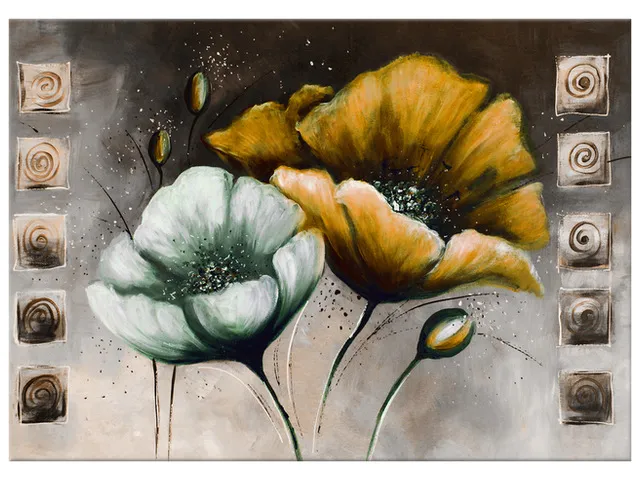 Obraz tlačený na plátne Maľované maky v žltej farbe