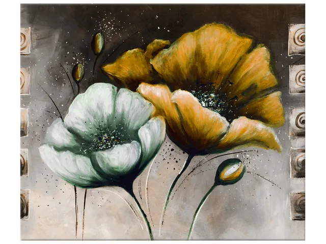 Úvod » Obrazy » Obrazy na plátne » Kvety » Obraz tlačený na plátne Maľované maky v žltej farbe