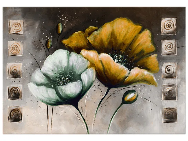 4564A_3D Obraz tlačený na plátne Maľované maky v žltej farbe |