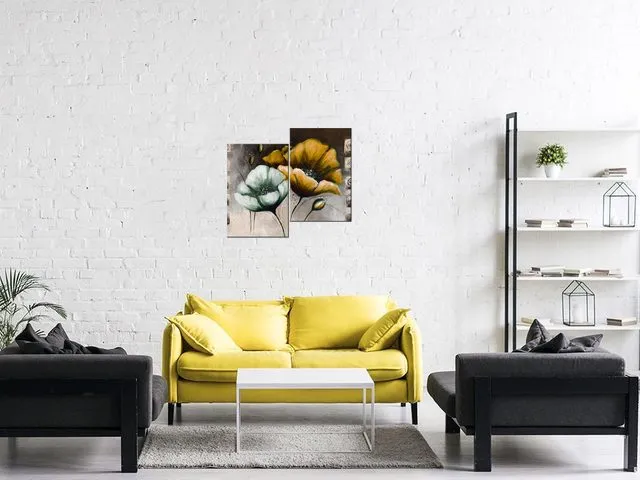 4564A_3D Obraz tlačený na plátne Maľované maky v žltej farbe |