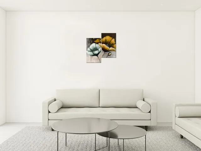 4564A_3D Obraz tlačený na plátne Maľované maky v žltej farbe |