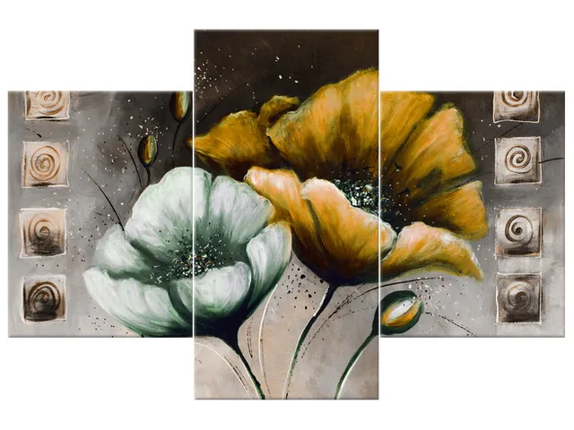 4564A_3D Obraz tlačený na plátne Maľované maky v žltej farbe |