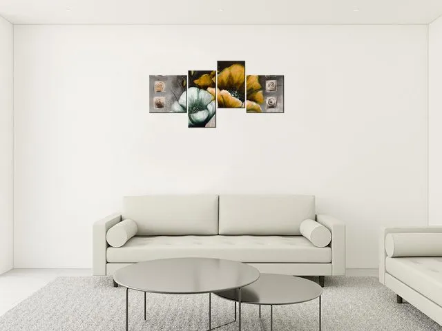 Úvod » Obrazy » Obrazy na plátne » Kvety » Obraz tlačený na plátne Maľované maky v žltej farbe