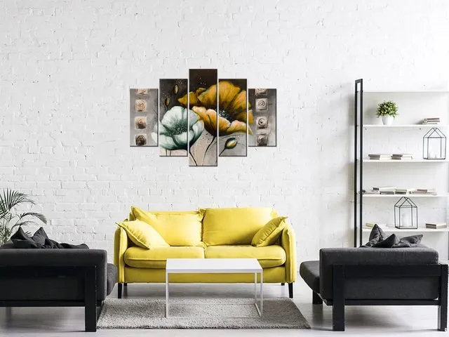 4564A_5K Obraz tlačený na plátne Maľované maky v žltej farbe |