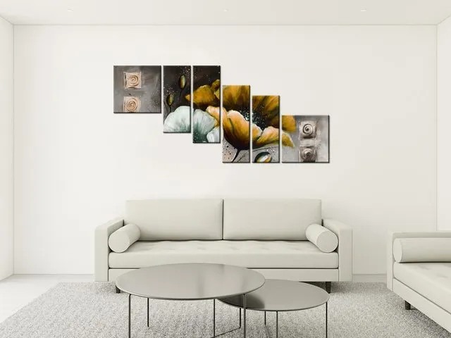 Úvod » Obrazy » Obrazy na plátne » Kvety » Obraz tlačený na plátne Maľované maky v žltej farbe