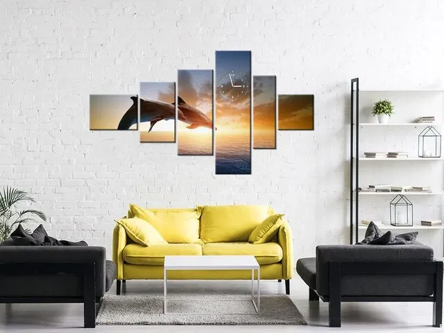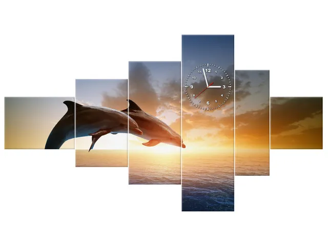 Obraz zvierat s hodinami Delfíny