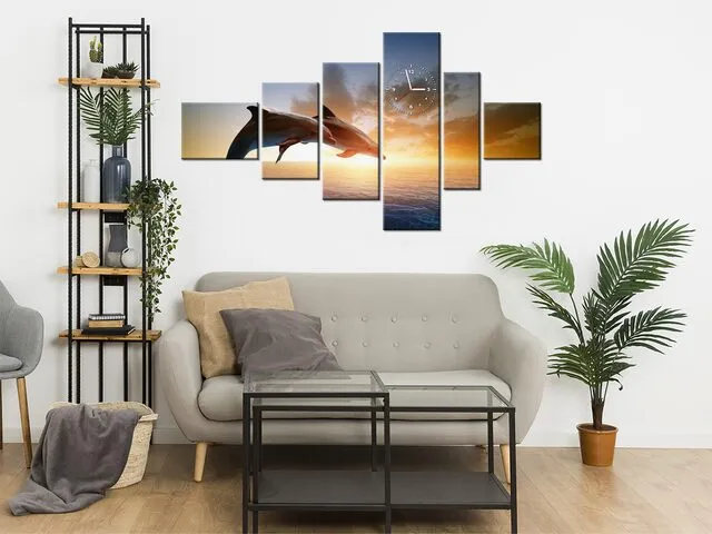 Úvod » Obrazy » Obrazy s hodinami » Obraz zvierat s hodinami Delfíny