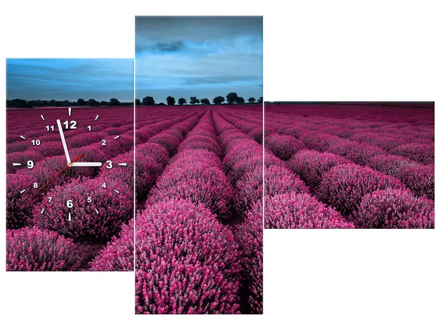 ZP4694A_3K Ohromujúca krajina s levanduľou vo fuchsii Obraz s hodinami |