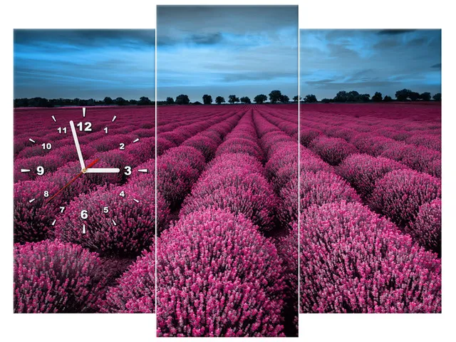 Úvod » Obrazy » Obrazy s hodinami » Ohromujúca krajina s levanduľou vo fuchsii Obraz s hodinami