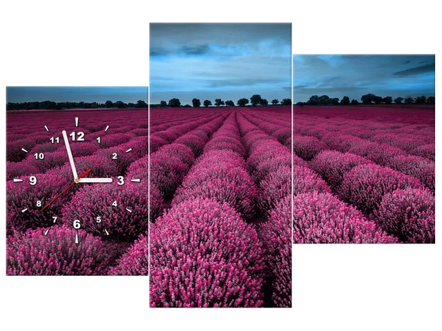 Úvod » Obrazy » Obrazy s hodinami » Ohromujúca krajina s levanduľou vo fuchsii Obraz s hodinami