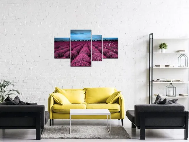 Úvod » Obrazy » Obrazy s hodinami » Ohromujúca krajina s levanduľou vo fuchsii Obraz s hodinami