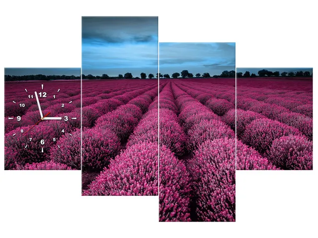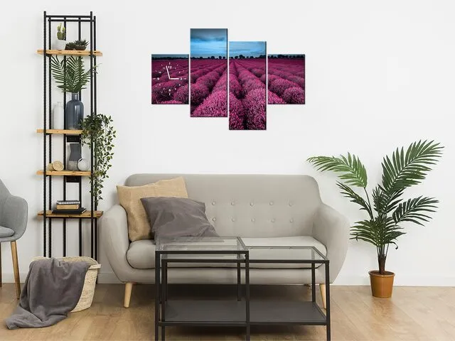 Úvod » Obrazy » Obrazy s hodinami » Ohromujúca krajina s levanduľou vo fuchsii Obraz s hodinami
