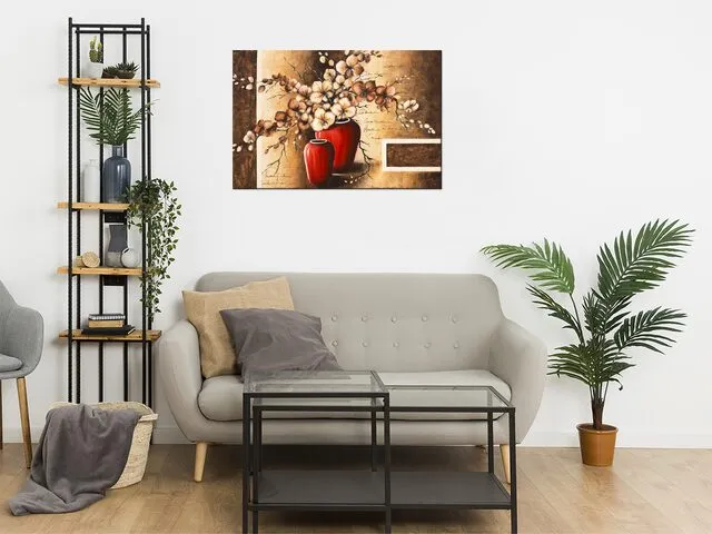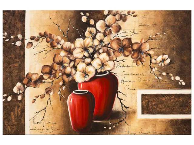 Úvod » Obrazy » Obrazy ručne maľované » Orchidey v červenej váze Ručne maľovaný obraz