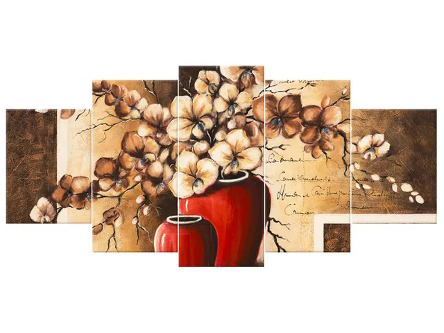 Úvod » Obrazy » Obrazy ručne maľované » Orchidey v červenej váze Ručne maľovaný obraz