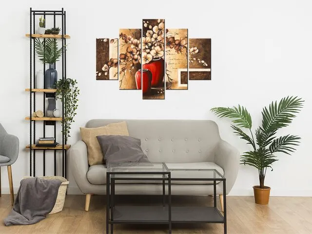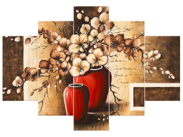 Úvod » Obrazy » Obrazy ručne maľované » Orchidey v červenej váze Ručne maľovaný obraz