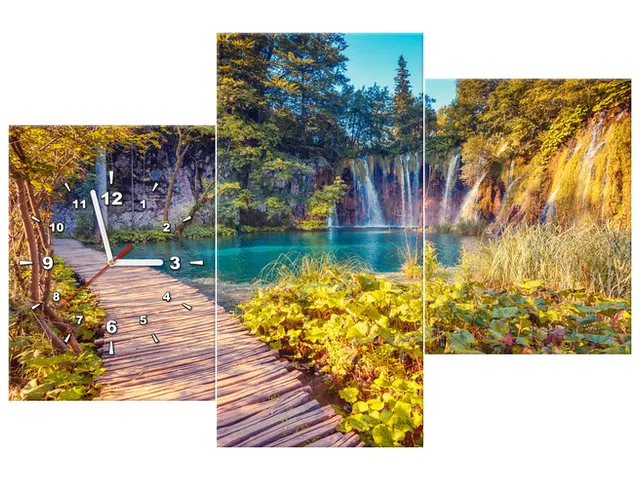 Úvod » Obrazy » Obrazy s hodinami » Plitvické jazero na jeseň - Obraz s hodinami