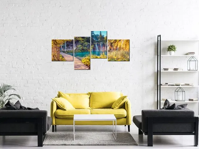 Úvod » Obrazy » Obrazy s hodinami » Plitvické jazero na jeseň - Obraz s hodinami