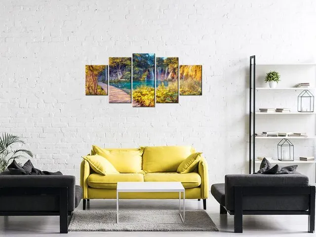 Úvod » Obrazy » Obrazy s hodinami » Plitvické jazero na jeseň - Obraz s hodinami