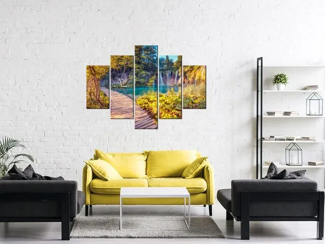 Úvod » Obrazy » Obrazy s hodinami » Plitvické jazero na jeseň - Obraz s hodinami