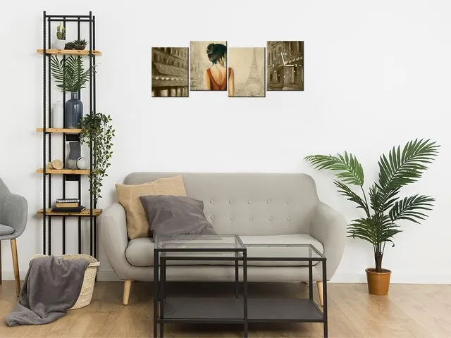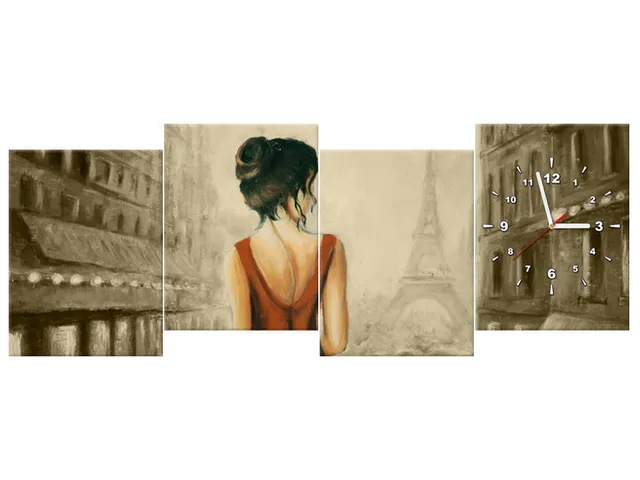 ZP4739A_3V Prechádzka po Paríži v sépii Obraz s hodinami |