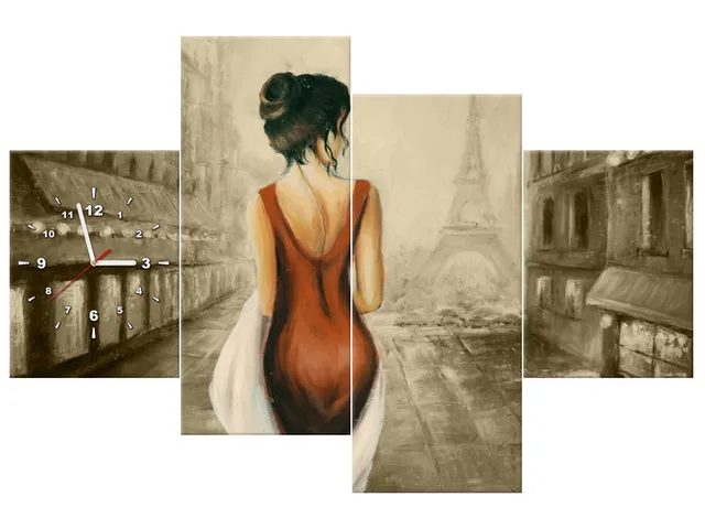Úvod » Obrazy » Obrazy s hodinami » Prechádzka po Paríži v sépii Obraz s hodinami